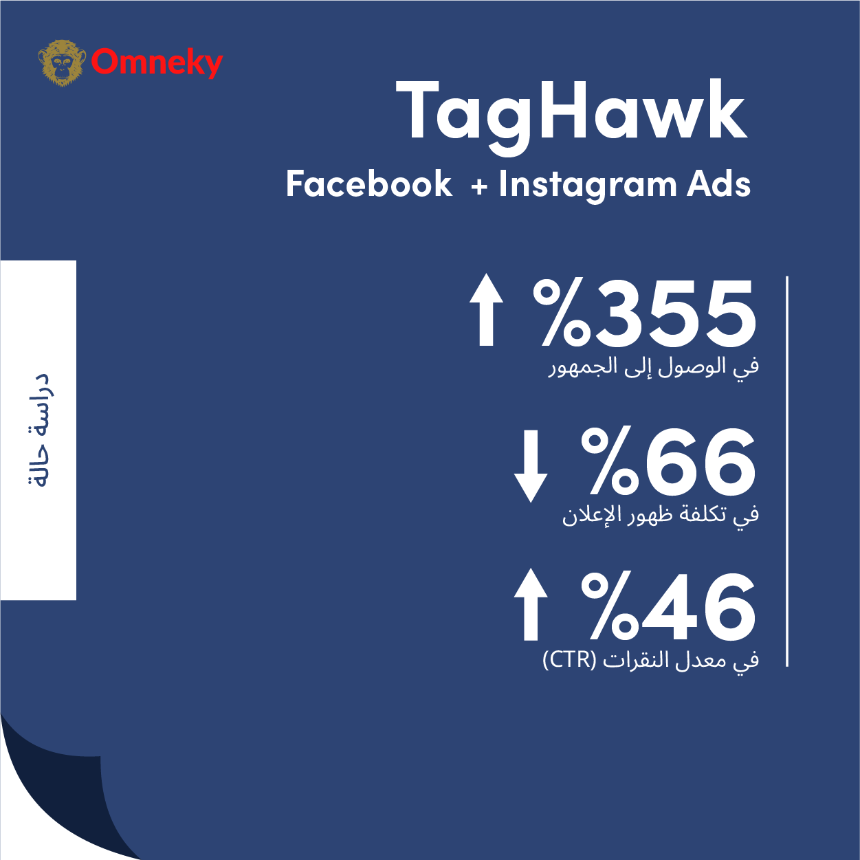 من خلال نهجنا القائم على البيانات، أنتجت Omneky تصميمات إبداعية ناجحة وزادت بشكل كبير من وصول TagHawk وحركة المرور. سعيدًا بالنتائج، ظل TagHawk عميلًا نشطًا.