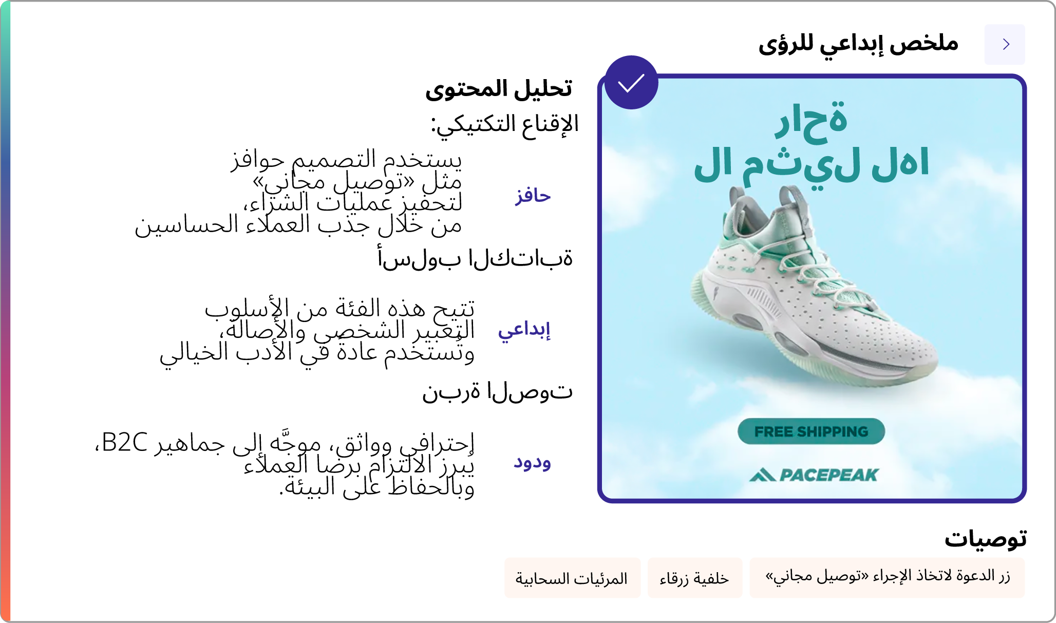 عزّز حملاتك من خلال دمج الإحصاءات من نتائج الإعلانات. لا يقوم Omneky بتحليل الأداء الحالي فحسب، بل يقدم أيضًا توصيات للنجاح في المستقبل.