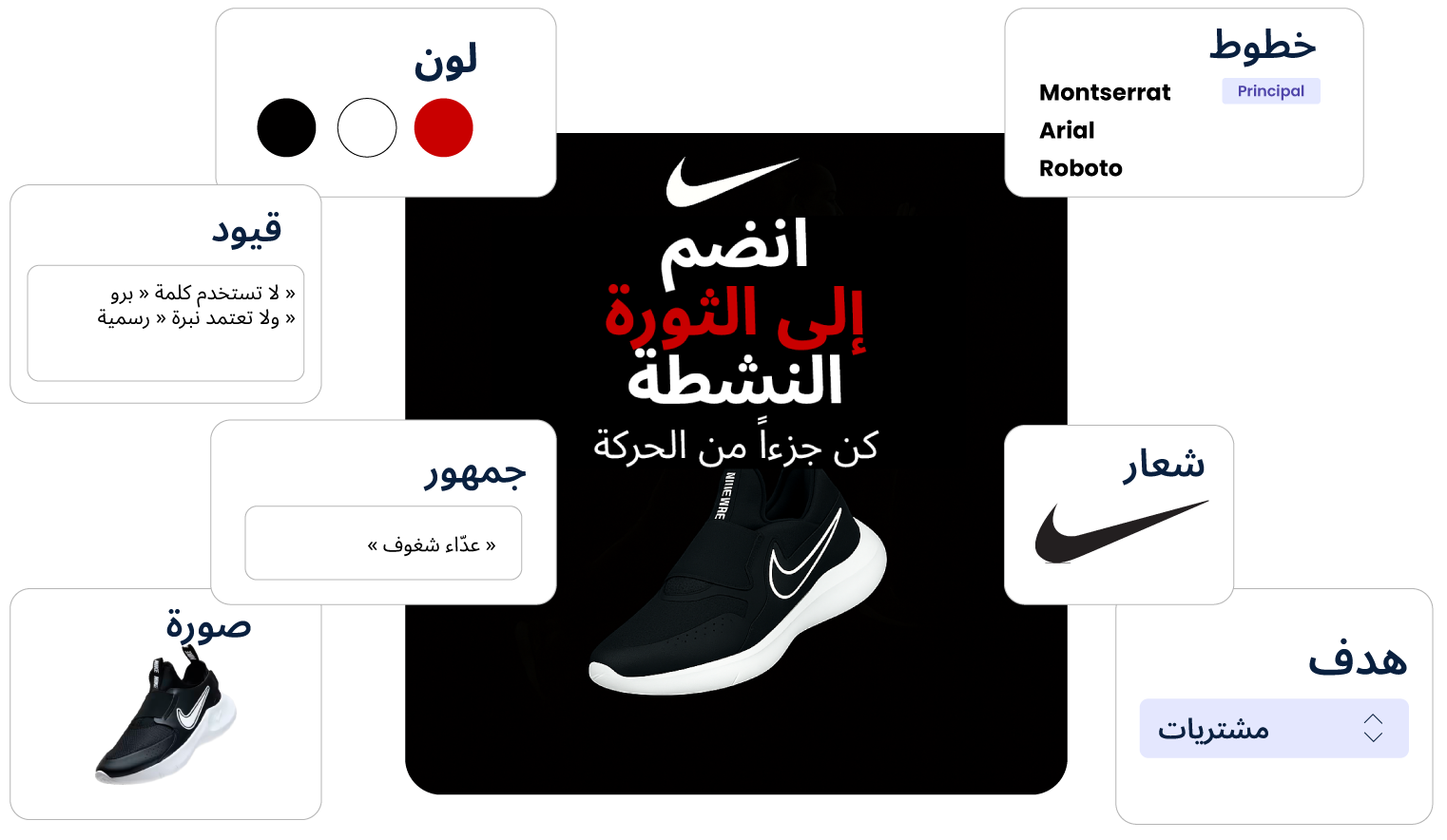 يتم تضمين الخط والألوان ونبرة الصوت في كل إعلان ذكي من المسودة الأولى.