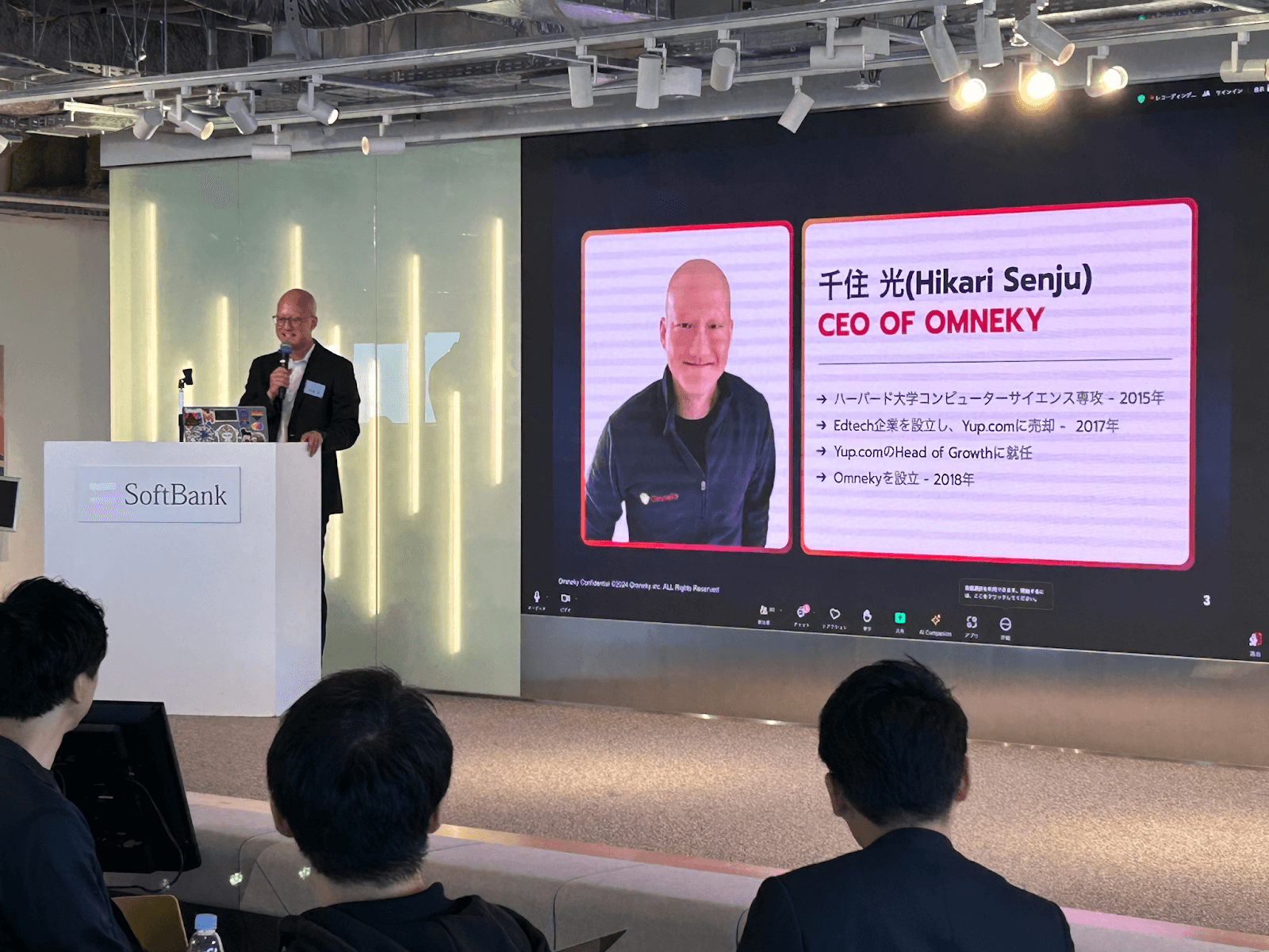 Omneky CEO Hikari Senju gave a presentation at Softbank Headquarters, announcing the partnership Omneky has with Softbank