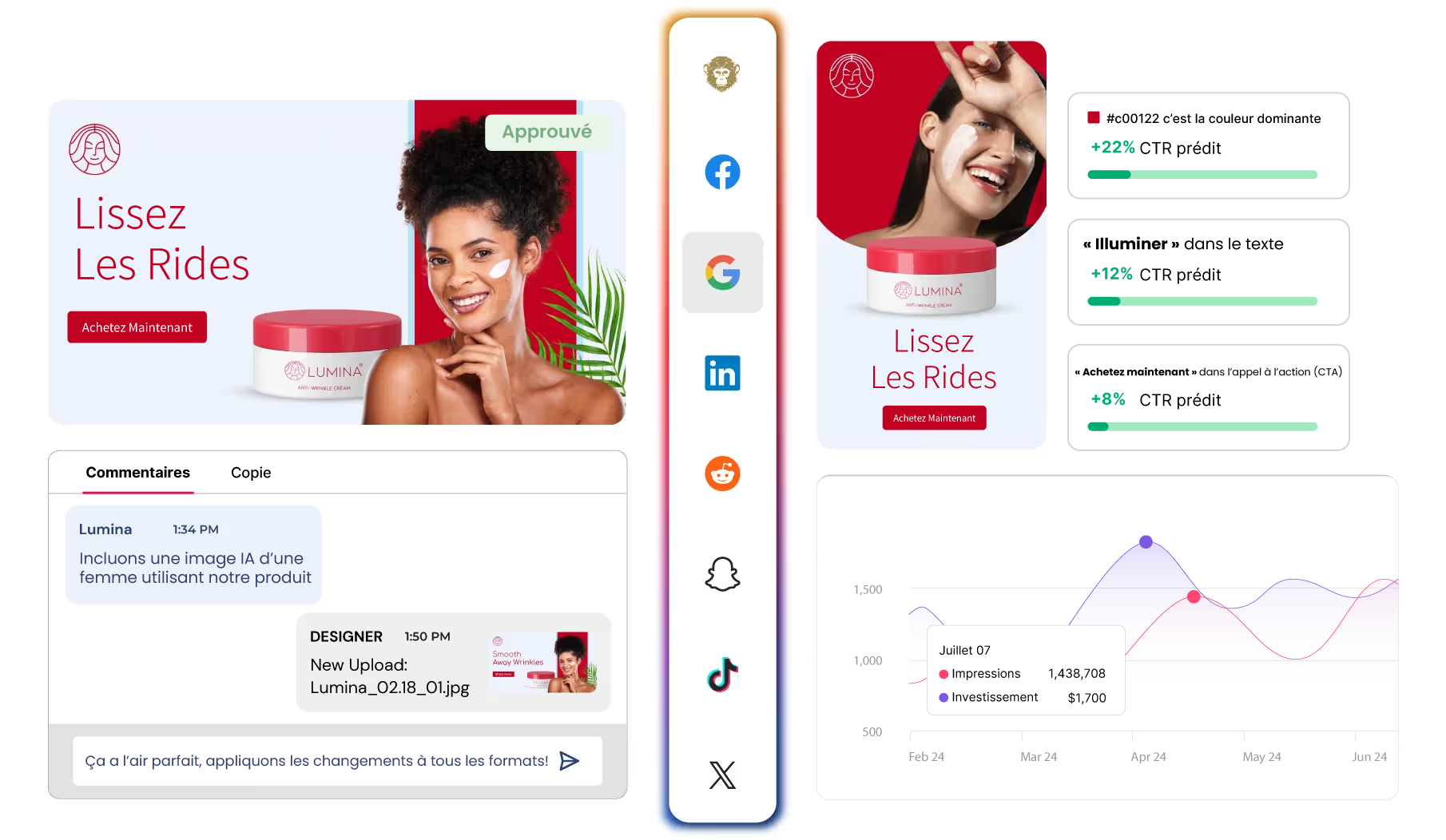 Renforcez votre stratégie grâce à une production publicitaire pilotée par l’IA et à des insights en temps réel.