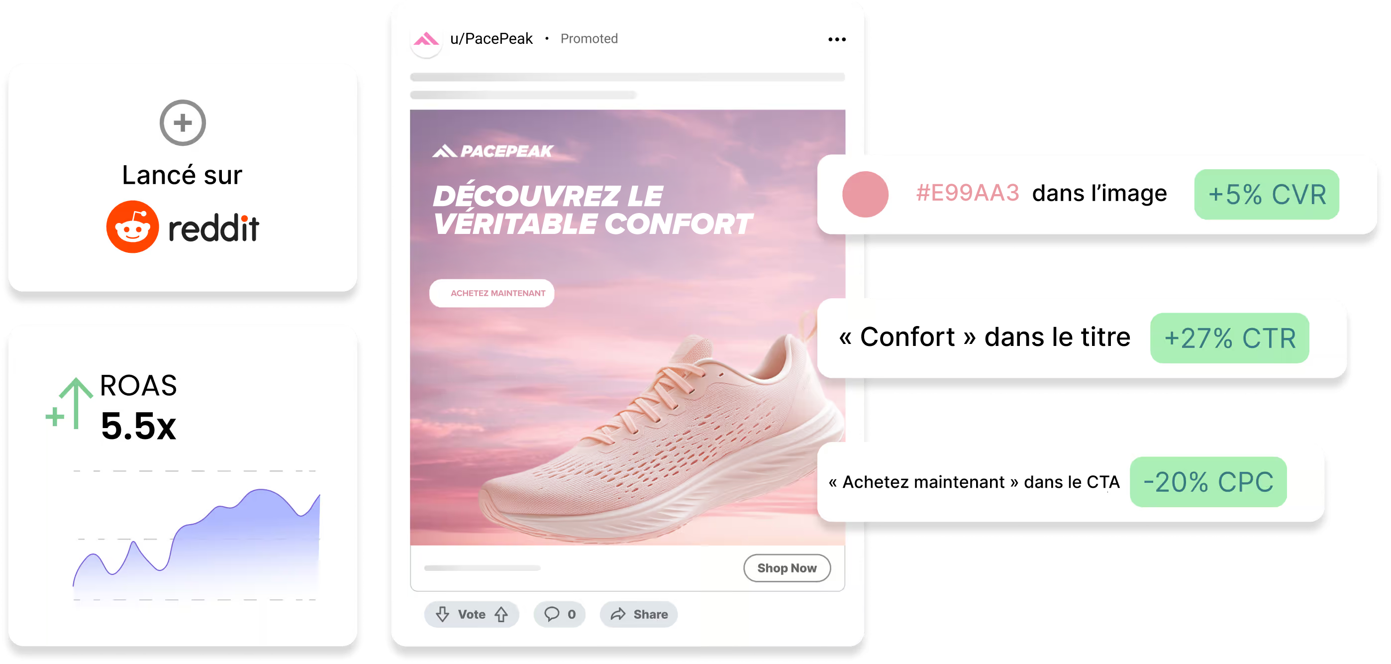 Identifiez les éléments créatifs de vos publicités Reddit qui stimulent les performances grâce aux analyses basées sur l'IA d'Omneky, permettant une amélioration continue et un retour sur investissement maximal.