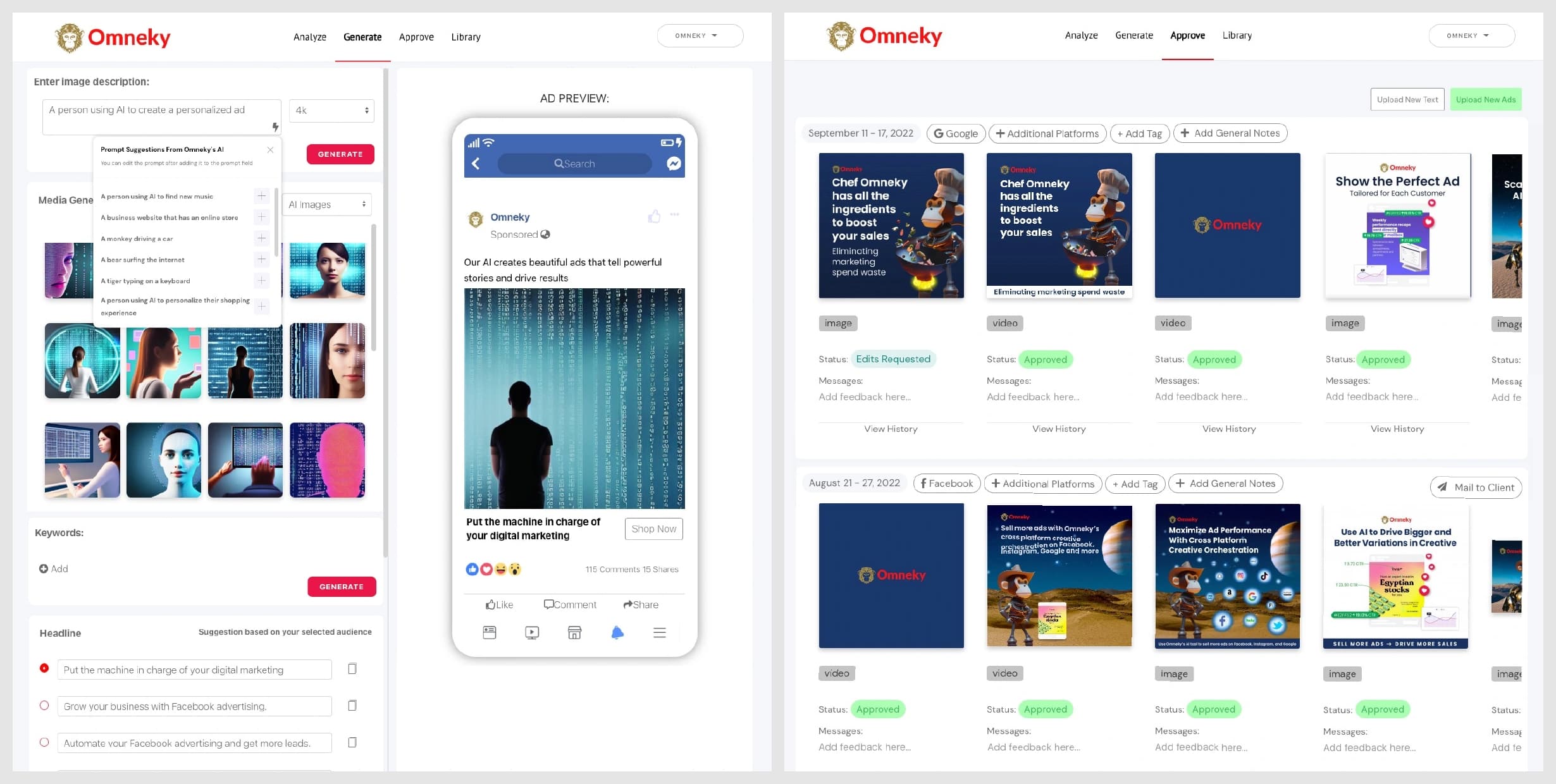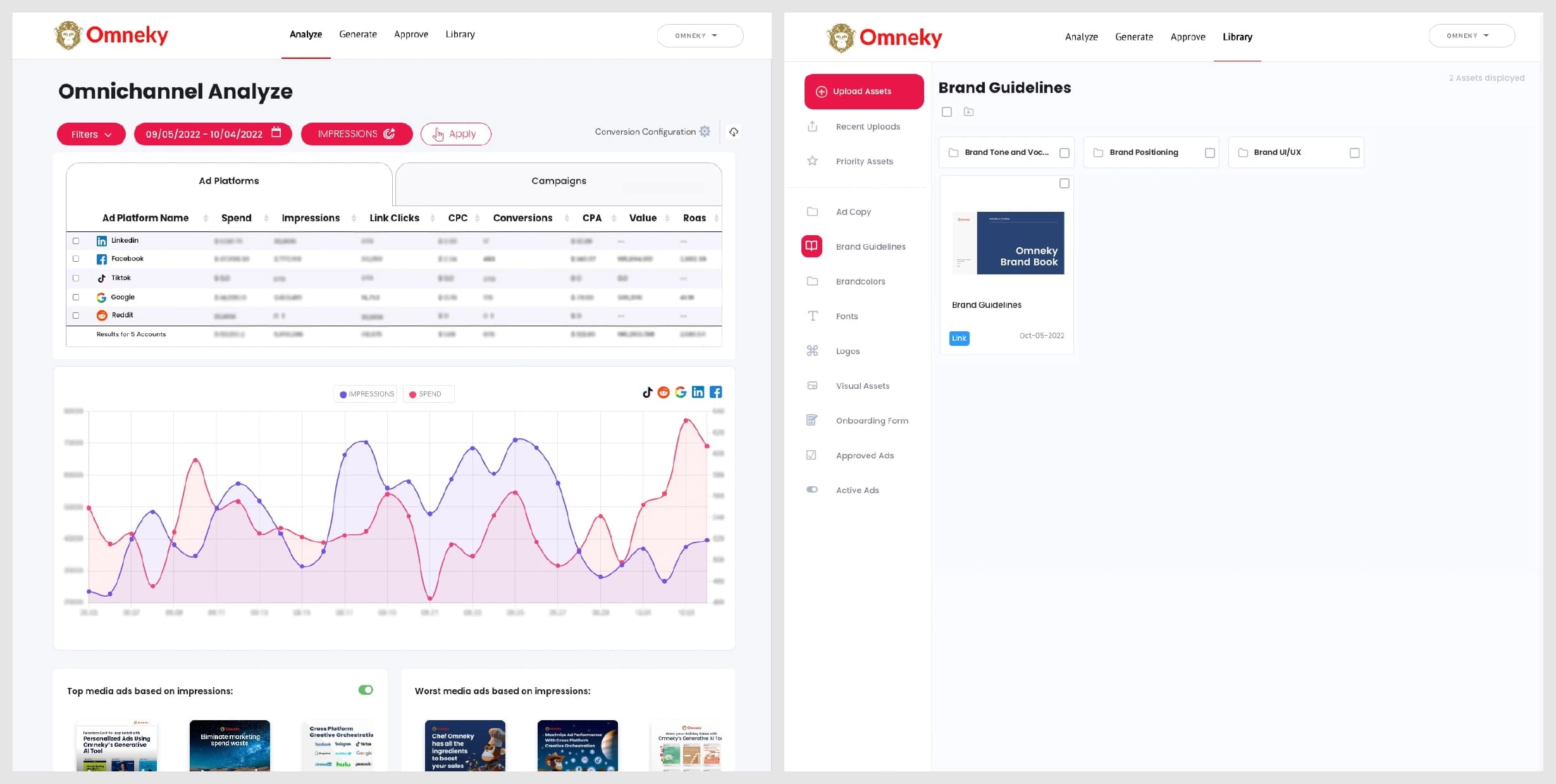 ブランドアイデンティティが強い場合、Omnekyはこれを考慮に入れることができます。プラットフォームでは、顧客がデジタル資産や過去の広告をアップロードできるため、プラットフォームが中央リポジトリとして機能します。