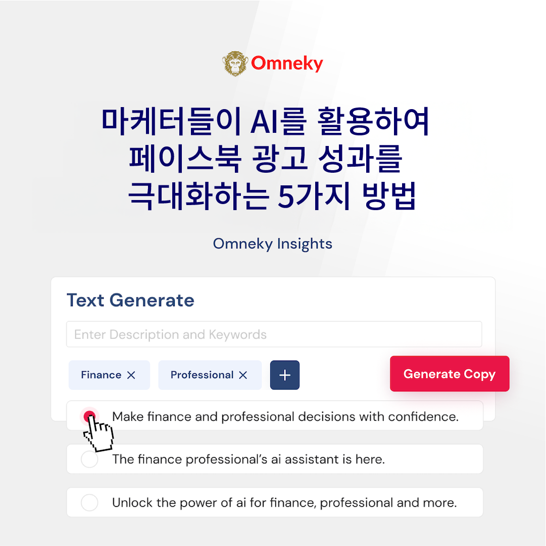 - AI 기반 광고 카피 테스트: 많은 도구가 광고 카피 생성을 위한 솔루션을 제공하며 이를 통해 빠르고 쉽게 카피를 테스트하여 성능을 개선할 수 있습니다.Omneky의 가장 큰 차별화 요소 중 하나는 당사 플랫폼이 광고 실적 데이터를 프로세스에 도입하는 유일한 솔루션 중 하나라는 것입니다.Omneky를 사용하면 이미지, 동영상, 헤드라인 및 설명 전반에서 더 많은 카피를 테스트할 수 있습니다.