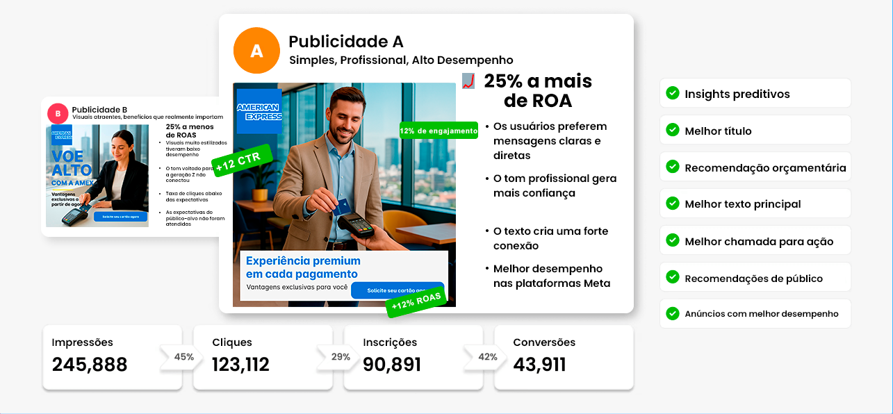 Unifique os padrões da marca e os insights de desempenho para criar campanhas de alta conversão.
