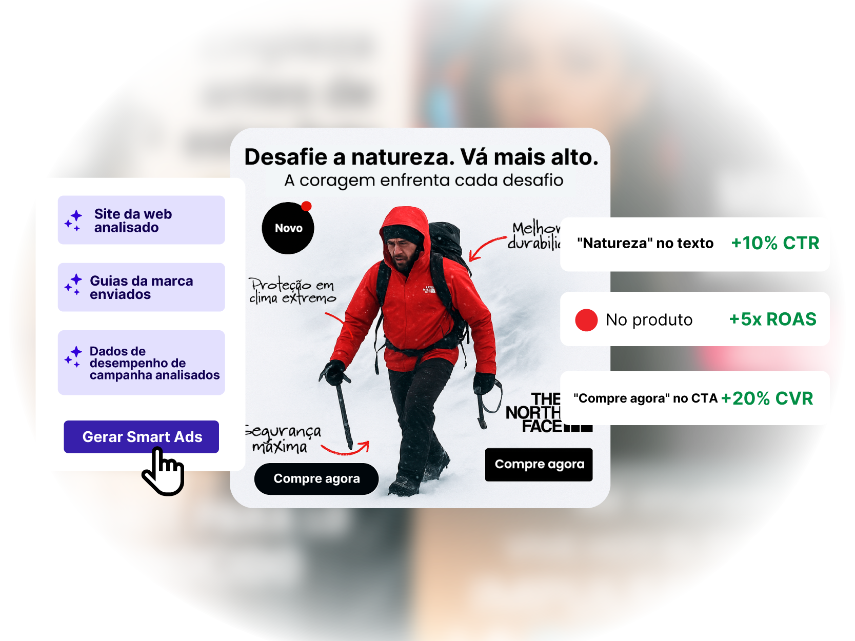 Com adaptabilidade multiplataforma integrada, o Smart Ads pode redimensionar e reformular criativos para diferentes posicionamentos, formatos de anúncios e SKUs de produtos, garantindo uma presença consistente e alinhada à marca em todos os canais.